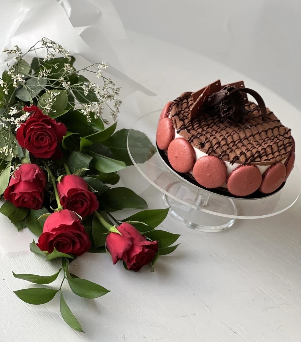 Red Velvet Cream Cheese Cake with Flower Bouquet