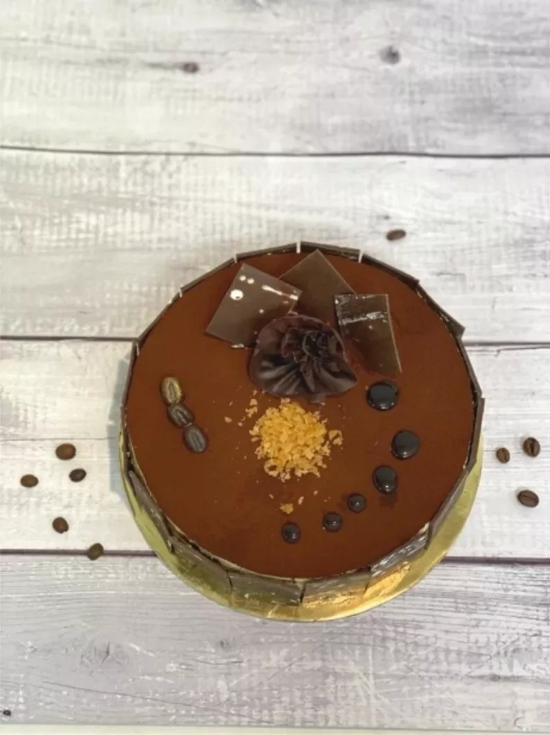 Soft chocolate mousse bavaroise with creme brulee. Rich & decadent with velvety smooth texture mirrored with dark chocolate glaze.1 kg and above will only be available after 24 hours.